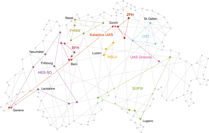 四所位于法语区(日内瓦大学、洛桑大学和纳沙泰尔大学、洛桑联邦理工学院)